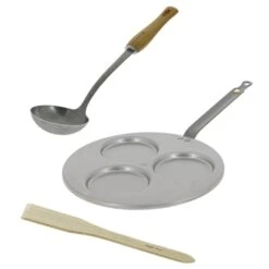 – Une poêle en tôle de fer blanc de la gamme Mineral B finition à la cire d’abeille et queue en acier feuillard, permettant de réaliser 3 blinis de 10 cm de diamètre.