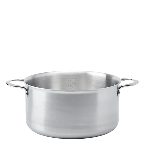 Doté de poignées pour le saisir en toute sécurité, de la surface de cuisson à la table, il possède des graduations intérieures tous les demi-litres et un intérieur en inox 18/10.