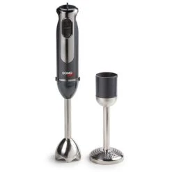 Ce mixeur plongeant et presse purée 800 W en inox vous permet de réaliser toutes vos préparations: purées, potages, sauces, milkshakes… très simplement et rapidement grâce à son moteur puissant. Ergonomique, il exécute absolument toutes les opérations d’un vrai robot d’une simple pression. Ses lames en acier inoxydable sont robustes et se nettoient très facilement en passant la tête du mixeur sous le robinet. La vitesse est réglable pour s’adapter à votre préparation avec une fonction Turbo qui vous permet de mixer avec précision. Le mixeur est livré avec un plongeur amovible et un presse purée avec inox pour écraser les pommes de terre, les carottes etc.