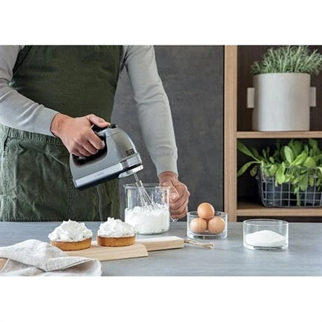 Indispensable pour une cuisine quotidienne maison, le batteur à main 9 vitesses 85 W gris argent Kitchenaid 5KHM9212ECU assure la réussite de toutes les préparations : mousses, sauces, pâtes levées, pâtes à gâteaux, à crêpes, blancs en neige, omelettes…