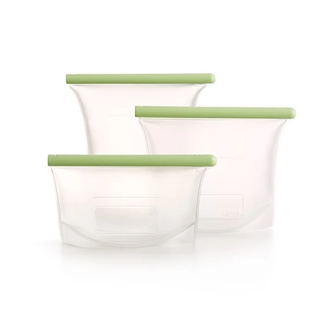 Conservez simplement tous vos aliments liquides ou solides grâce aux 3 sacs en Silicone Lékué. Une vraie alternative aux contenants en plastique jetables. 100% hermétiques ils vous permettront de conserver vos soupes, viandes, sauces, poissons, légumes… Faciles à stocker vous pouvez les placer de façon horizontal ou verticale dans votre réfrigérateur ou congélateur et économiser de l’espace. Simple d’utilisation, un repère indique la capacité maximale de votre sachet, et un petit encadré est dédié à noter la date ou le nom du produit.