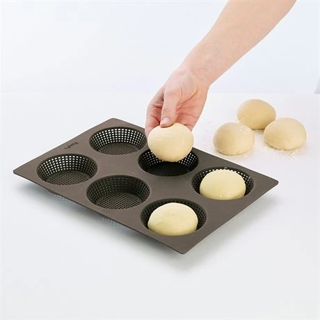 La plaque souple 6 petits pains ronds perforée permet de réaliser différentes recettes de pains à la mie moelleuse et à la croûte croustillante. Grâce aux perforations dont elle est munie, l’air circule pendant la cuisson et la pâte reste sèche, pour un résultat optimal.