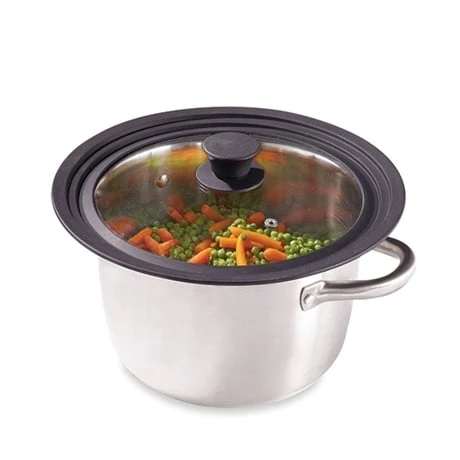 Lot Panier Vapeur Multidiamètre 20, 22, 24 Cm Et Couvercle En Verre Multidiamètre