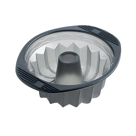 Le moule à Kouglof en silicone associe la souplesse d’un moule en silicone à la rigidité d’un moule traditionnel. Le silicone souple garantit un démoulage facile et les poignées rigides permettent de manipuler aisément le moule, même après remplissage.