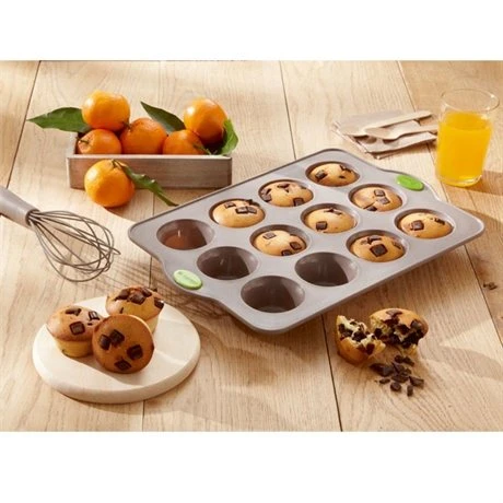 Le Moule 12 muffins RigiFlex permet de préparer jusqu’à 12 gâteaux et assure un démoulage parfait, sans ajout de matière grasse. Les gâteaux obtenus sont moelleux à coeur et savoureux.