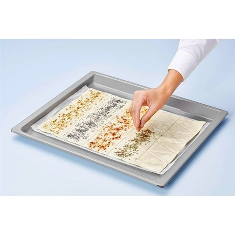 Découvrez cette roue pour apéritifs qui va vous permettre de réaliser de délicieuses chips tortillas croustillantes faites maison, pour le plus grand plaisir de vos convives. D’un fonctionnement très simple, ce rouleau vous permet par simple passage en largeur de votre pâte, de la découper en environ 5 bandes, dont chacune contient désormais un pré-découpage d’environ 10 petits triangles que vous pourrez facilement diviser entièrement une fois cuits. Plusieurs options s’offrent alors à vous, vous pourrez assaisonner votre pâte pour déguster vos apéritifs natures, les garnir et les passer au four directement, ou utiliser deux triangles à chaque fois pour pouvoir réaliser des triangles garnis. Libre à vous de satisfaire vos papilles et de régaler vos invités de la manière qui vous convient le mieux, et de garnir et assaisonner vos petits triangles de vos saveurs favorites. Pour vous aider et vous guider, un recueil de recettes pour chips épicés mais aussi pour réaliser des sauces raffinées ou des amuse-gueules originaux !