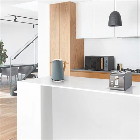 Bouton imitation bois, coloris blanc cassé à la texture douce « Soft Touch » et notes de gris pour mettre souligner l’ensemble, le grille-pain Fjord 2 fentes 800 W SCTON2W Schneider est intégré dans la gamme Fjord, inspirée de la décoration scandinave. Apportez une touche d’élégance nordique à votre plan de travail tout en profitant de ses performances haut de gamme.