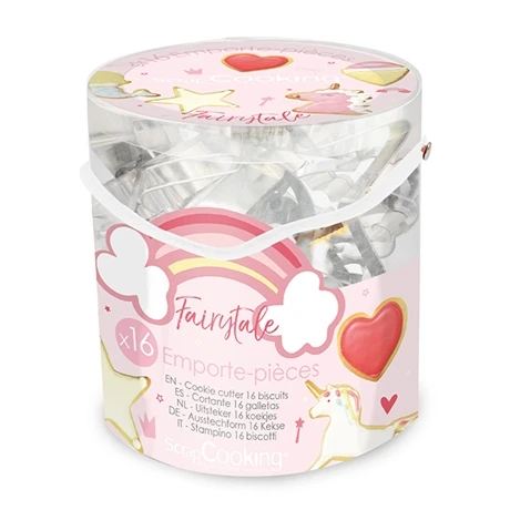 Pour un anniversaire, un goûter ou une fête dans l’univers du conte de fée, rien de tel que le seau de 16 découpoirs Fairytale Scrapcooking.